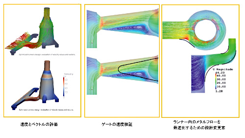 ランナー内の金属流動やゲート部での流入角度などの直感的な視覚化により、流路・ゲート形状の迅速な