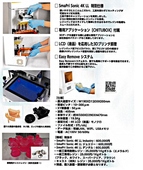 ◇4K液晶タイプ 光造型3Dプリンター