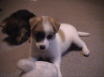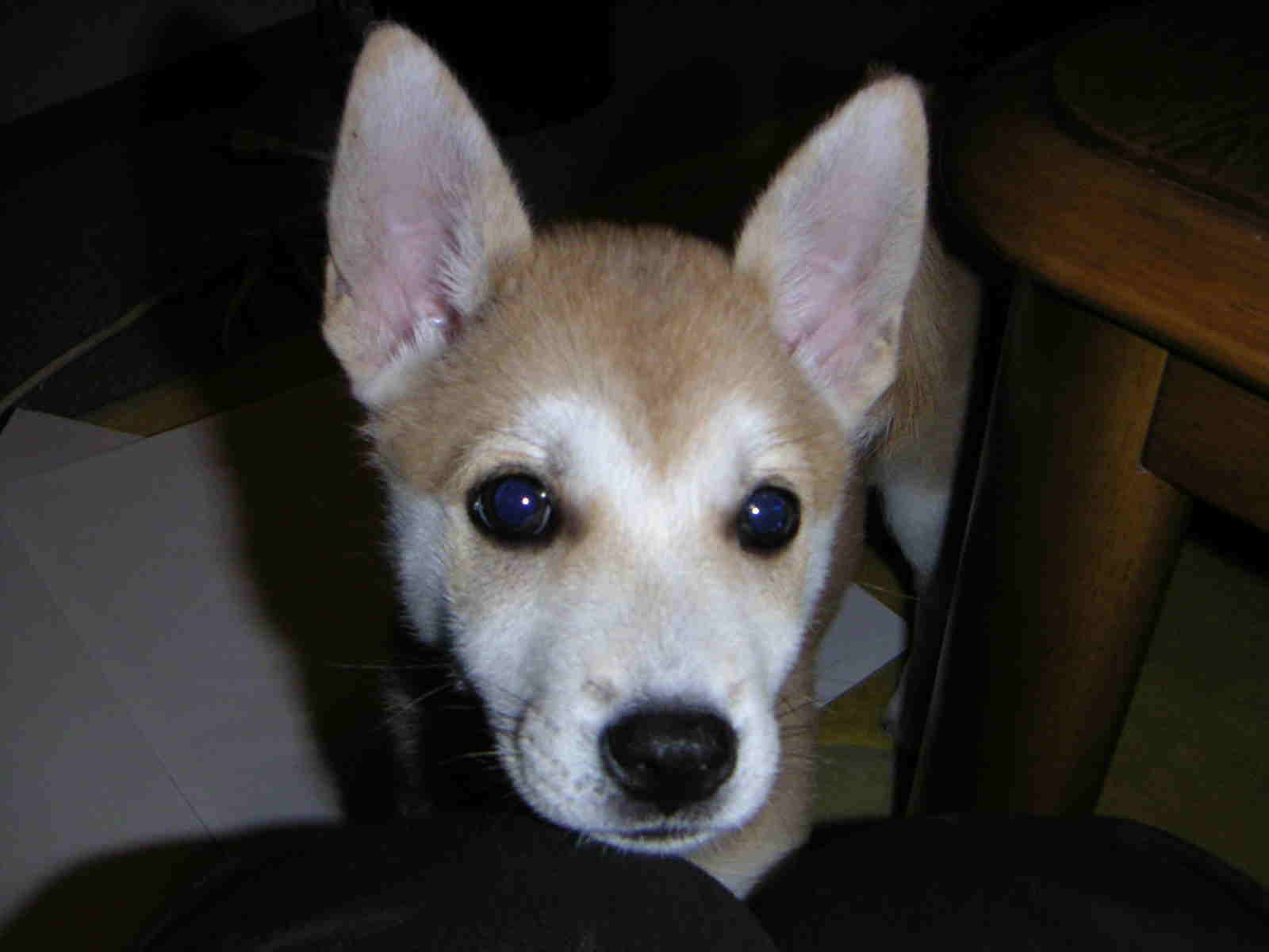 2005年2月末 間々田の野良ちゃんの子犬を3匹引き受け、1匹知り合いに預かってもらう。母親は小ぶりで美人。父親不明だが あまり大きくならないだろう?? | 3匹の中では 一番食欲があり、ドッグフードもふやかさずに食べることがひとりだけ出来た。島田ゆかの絵本の バムにそっくりな愛嬌のある子 |